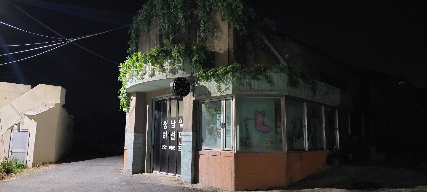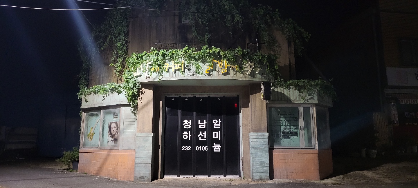 밤에 사진을 찍어서 사진이 이쁘게 나오지 않지만 그래도 볼 것은 다 본 느낌였어요 여기 커피점은 드라마에서 많이 나오는 곳인 것 같아요, 오춘 재역을 하시는 조한철 배우분과 오주리 역을 하시는 김민서 배우분이 사는 곳이랍니다, 원래는 알루미늄 가게였나 봐요~ 세트장으로 쓰시는 것 같네요 ~ 안에 내부를 보고 싶지만 볼 수가 없어서 안타가 워요